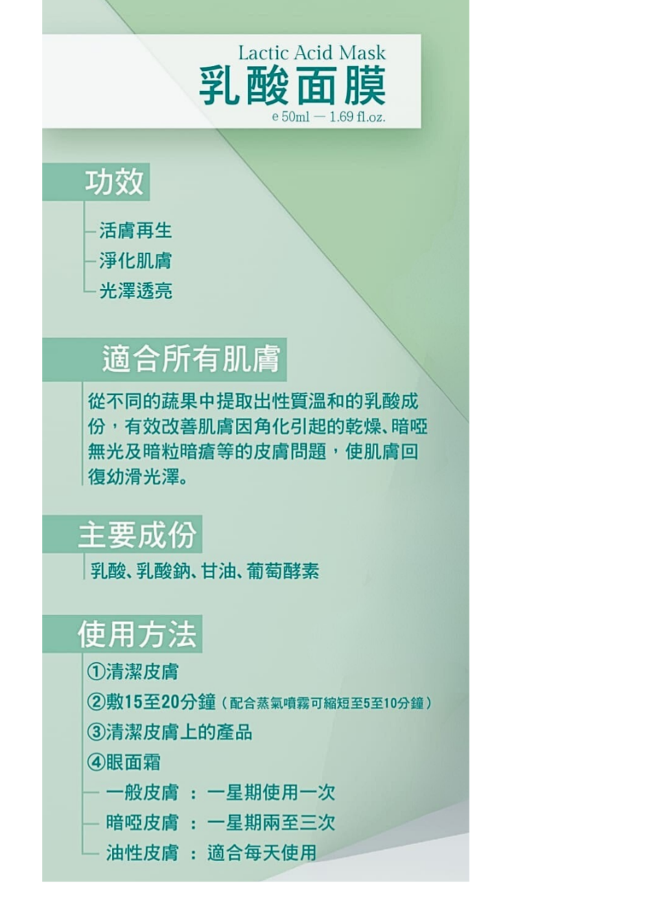 EXP 12. 2025 Skinlab 乳酸面膜 250ml Latic Acid Mask